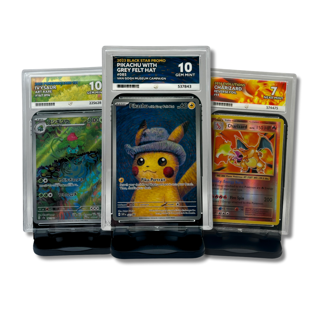 Authenticated Pokémon singles, professionally graded and sealed in slabs. Shop PSA, Beckett, ACE and PG cards for display-ready pieces with trusted grades.